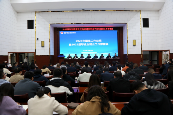 10月20日上午,汉中职业技术学院在图书馆学术报告厅召开2025年招生工作总结暨2026届毕业生就业工作部署会。学院党委书记李志刚,党委副书记、院长张国海等全体院领导,校属各单位负责同志,各二级学院综合办和学管办负责人、各教研室主任和专业负责人,学院2026届毕业班级班主任和促就业结对干部,招就处全体工作人员等160余人参加会议,会议由张国海主持。