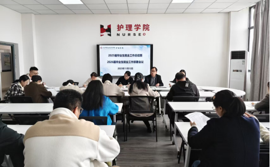 11月12日,汉中职业技术学院护理学院召开2025届毕业生就业工作总结暨2026届毕业生就业工作部署会议,学院党委委员、总会计师尚丽华,护理学院党政领导、2026届毕业班辅导员(班主任)及结对帮扶干部参会。会议由护理学院党总支书记赵劲松主持。