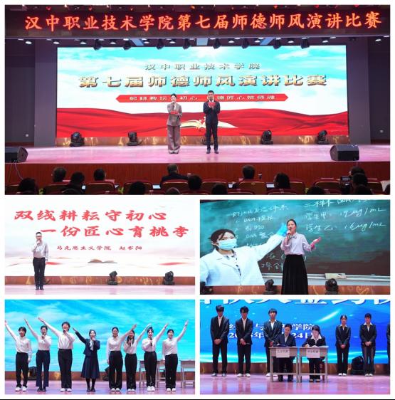 12月24日下午,汉中职业技术学院第七届师德师风演讲比赛在行政楼一楼多功能厅举行。学院党委书记李志刚,党委副书记、院长张国海,党委副书记袁力,党委委员、总会计师尚丽华,副院长孟爱民,党委委员、副院长张仕锋,全院教师及学生代表共同观摩。比赛由人事处梁琨、陈思佳主持。