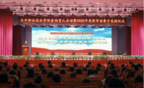 12月29日下午,汉中职业技术学院举行资助育人活动暨2025年奖学金集中发放仪式。学院党委书记李志刚,党委副书记、院长张国海及全体领导班子成员、校属各单位党政负责人、学生家长及学生代表在行政楼一楼多功能厅主会场参会;“四进两联一交友”包联干部、其他在校学生和辅导员、班主任在各学生班级自修教室分会场参会;岗位实习学生和学生家长分别在实习点和家中收看,活动由张国海主持。