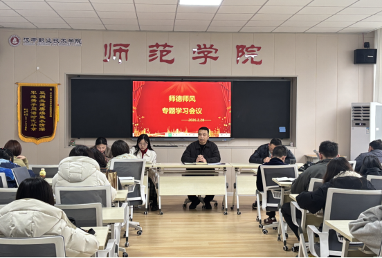 【师范学院】2月28日下午,师范学院召开2025-2026学年第二学期开学工作会议,会议由综合办主任郝浩竹主持。会上,党总支书记徐坤组织全体教职工开展师德师风专题学习,领学了学院《2026年校园安全稳定工作实施方案》,要求一是抓实教育教学,深耕教育主阵地;二是强化专业建设,深化教研教改;三是做实学生管理,守牢安全底线;四是团结协作,形成推动学院高质量发展的强大动力。师范学院院长秦艳红希望,一是调整心态,以饱满的精神状态投入教学工作;二是积极准备,认真上好第一课;三是制定学期计划,为个人发展早做准备;四是遵守各项规定,切实履行工作职责。副院长刘丽围绕授课计划制定、课堂教学提质、近期各类考试准备等教学工作提出了具体要求。