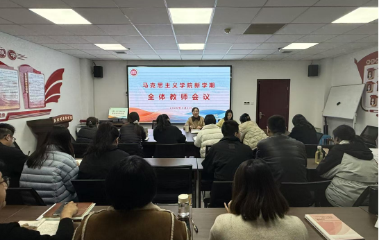 【马克思主义学院】3月1日上午,马克思主义学院召开了全体教师会议。会议由马克思主义学院院长尚云主持,马克思主义学院全体专兼职教师参加会议。马克思主义学院党总支宣传委员黄芊芊带领全体参会人员专题学习《2026年校园安全稳定工作实施方案》。马克思主义学院综合办主任刘璇通报了寒假期间十项重点工作完成情况,以及2025—2026学年开学初教学准备工作进展情况。尚云强调,全体教师要始终坚守立德树人初心,主动对接国家战略、省市部署和学院要求,紧扣“补短板、强特色、创品牌”三条主线,聚力推进“五大工程”——党建品牌领航工程、科研攻坚突破工程、教学赛事冲刺工程、大中小一体化贯通工程、“大思政课”改革创新工程。希望全体思政课教师,深刻领会习近平总书记在新年贺词中提出的“三马精神”,携手同心、共同推动马克思主义学院高质量发展。