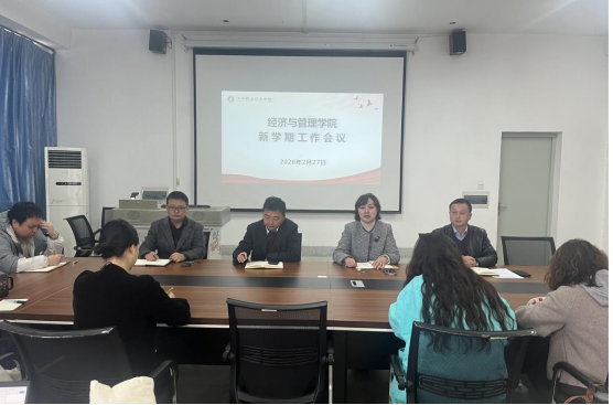 【经管学院】2月27日,经管学院召开2025-2026学年第二学期期初工作会议,全体教职工参加会议。副院长卜义通报了寒假期间重点工作进展情况,就学期初教学准备工作作出安排;学管办主任张弛通报了假期招生就业、实习管理及学生社会实践活动等工作开展情况。院长戴文娟强调,新学期全体教职工要凝心聚力,团结奋进,认真谋划经管学院2026年各项工作。党总支书记周泽要求,一是提高政治站位,强化理论武装、压实党建工作责任,推动党建与专业、与学生工作深度融合,守好意识形态和校园安全阵地,为学院省级文明校园创建验收做好支撑。二是聚焦立德树人,将价值引领贯穿教育教学全程,狠抓师德师风建设,深化三全育人,强化招生宣传与就业指导,提高生源质量,促进学生高质量就业,努力培养高技能人才。三是紧扣中心工作,做好教学科研保障,凝聚团队合力,积极对接地方产业需求,以专业数字化转型为抓手,做强专业优势、提升社会服务能力。四是锤炼过硬作风,全体人员要及时收心归位,严明纪律,守牢底线,担当作为,狠抓落实,推动经管学院内涵建设再上新台阶。