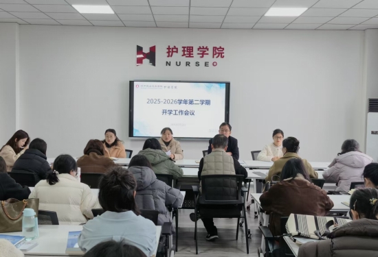 【护理学院】3月1日,护理学院召开新学期开学工作会议,全体教职工参加会议,院长霍枚玫主持。会上,综合办主任李敏就寒假期间重点工作进行了通报。副院长马春丽对开学教学准备工作、技能大赛备赛组织、教学纪律要求、补考等工作作了具体安排。党总支书记赵劲松要求全体干部职工要崇尚师德、廉洁从教、依法执教,全力维护校园安全稳定,以饱满的精神状态,投入新学期各项工作中。霍枚玫组织大家学习了学院关于教职工进修、教科研相关文件精神,并结合学院新学期工作的部署要求,就护理学院本学期重点工作进行安排部署。她希望全体教职工要明确年度目标方向,力争在专业建设、课程建设、产教融合及科研创新等方面取得新进展、实现新突破,为推动学院内涵式高质量发展做出积极贡献。