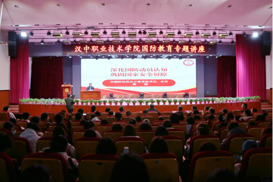 3月11日下午,汉中职业技术学院邀请汉中市国防动员办公室党组书记、主任高峰来院做国防教育专题讲座。学院党委书记李志刚,党委副书记、院长张国海,党委委员、副院长张仕锋,汉中市国防动员办公室四级调研员戚德胜,以及汉中市国防动员办公室相关人员、学院相关部门和二级学院负责同志、军事理论课教师、学生代表等600余人参加活动。讲座由张国海主持。