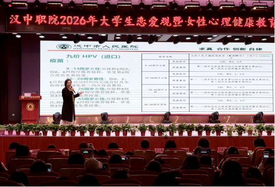 3月25日,汉中职业技术学院在行政楼一楼多功能厅举办“3·25心理健康日——大学生恋爱观暨女性心理健康教育”专题讲座。汉中市人民医院副院长、妇产科主任医师广会娟应邀主讲,学院妇联各部门、学工部(处)负责人,大学生心理健康教育与咨询中心全体人员,各二级学院心理辅导站成员,大学生自律委员会心理部成员,各二级学院女学生代表,共计600余人参加讲座。讲座由学工部(处)副部(处)长汤智慧主持。
