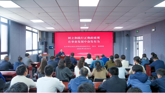 4月23日下午,汉中职业技术学院党委副书记、院长张国海以“树立和践行正确政绩观,在事业发展中奋发有为”为题,讲授树立和践行正确政绩观学习教育专题党课。