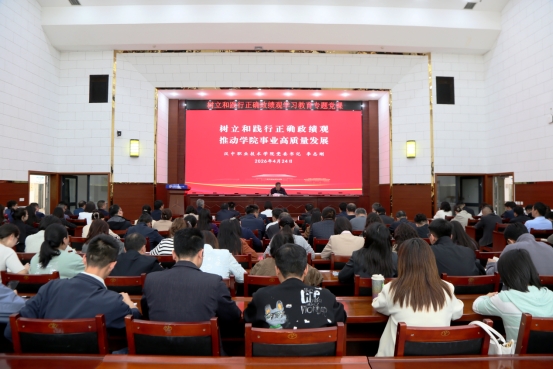 4月24日下午,汉中职业技术学院党委书记李志刚以“树立和践行正确政绩观,推动学院事业高质量发展”为题,为学院副科级及以上干部讲树立和践行正确政绩观学习教育专题党课。