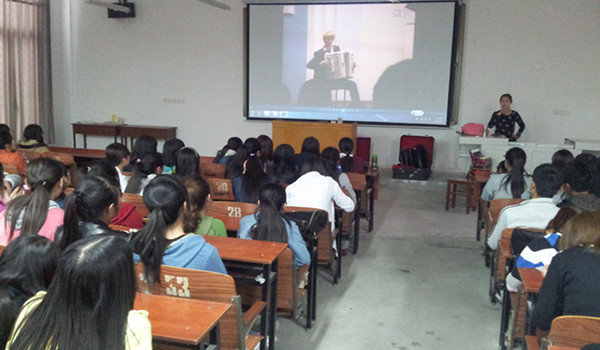 为进一步提高教育系学生专业素养,2014年4月9日下午2点30分,教育系在1号教学楼113大阶梯教室举办艺韵风琴讲座,该系薛婷老师为140余名学生作了题为“手风琴基础知识与赏析”讲座。