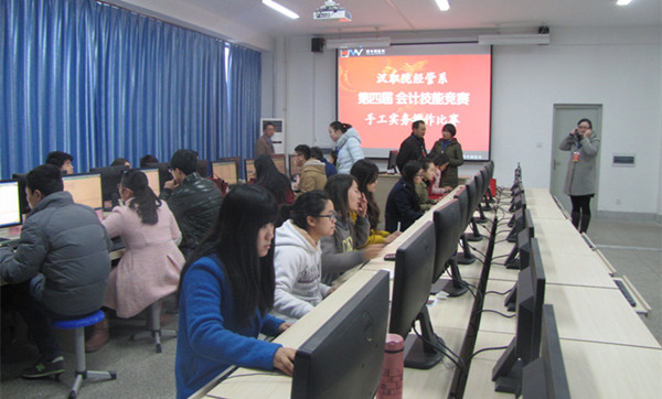 2014年12月20日上午,汉中职业技术学院经济与管理系第四届会计技能大赛(网中网平台手工实务操作比赛)在3号实训楼205、206实训室举行。经济与管理系2011级五年制会计电算化班、2013级会计与审计班、2013级会计电算化班的44名学生组成了11支参赛队参加了比赛。