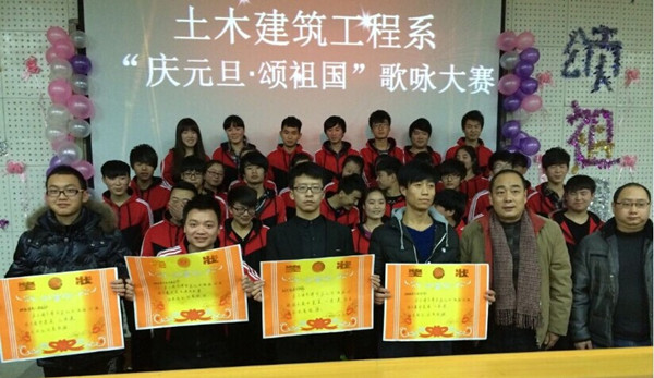 2014年12月25日晚19:30,汉中职业技术学院土木建筑工程系在7号教学楼201多媒体室举办了“庆元旦·颂祖国”歌咏大赛。土建系在校各班级代表队参加了此次比赛。土建系党政领导及全体班主任老师担当了本次大赛的评委。