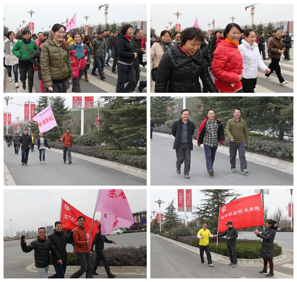 2015年1月5日下午三点,由汉中职业技术学院基础课教学部党总支、分工会联合举办的党员与非党员教职员工“手牵手、结对子迎新年健步走”活动在汉江滨江西路举行。基础课教学部党总支全体党员以“一对一”结对子形式带动基础部全体非党员教职员工参加了健步走活动。学院纪委办主任张新成、教务科研处处长杨进峰、招生就业处处长张仕锋、学生工作处副处长周海新等11名其他党支部党员老师和学院兄弟分工会会员应邀参加了本次活动。
