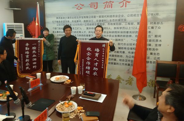 2015年1月18日,农林科学与技术系受陕西省金沙滩农业综合开发公司邀请,参加该公司“市县协作单位座谈会”,并获赠“培育人才助农业、校企合作结硕果”锦旗一面。