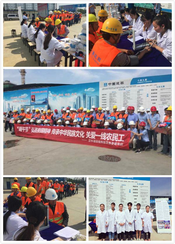 2017年5月25日,汉中职业技术学院药学与医学技术系青年志愿者应邀在汉台区兴元新区建筑工地为中建七局汉中项目指挥部百余名农民工开展免费血压测量,端午节送温暖活动。