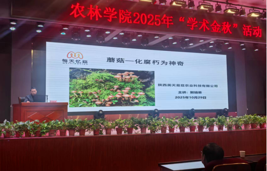 10月29日下午,农林学院在行政楼一楼多功能厅开展2025年“学术金秋”专题讲座活动。陕西美天易菇农业科技有限公司董事长、高级农艺师郭培荣应邀作报告。农林学院全体教师及相关专业学生共300余人参加活动。活动由农林学院副院长赵苗苗主持。