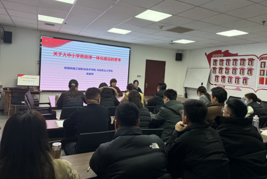 12月22日,教育部高等学校思想政治理论课教学指导委员会委员、陕西铁路工程职业技术学院马克思主义学院院长、汉中职业技术学院“大思政课”实践导师李新萍教授应邀到马克思主义学院,在行政楼513会议室作题为“大中小学思政课一体化建设”的专题讲座。马克思主义学院全体专兼职思政课教师参会,综合办主任刘璇主持。