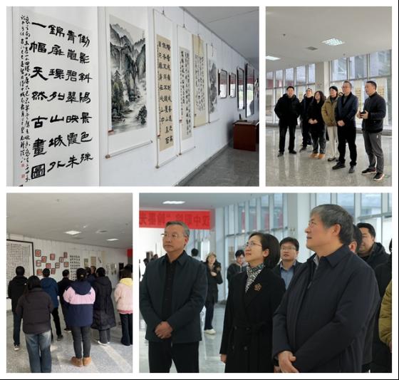 12月24日,学院“翰墨光影颂华章 同心筑梦绘新篇”教职工书画展在行政楼一楼报告厅外侧开展。学院党委书记李志刚等领导与师生代表共赏艺术雅韵,感受中华优秀传统文化的深厚魅力。