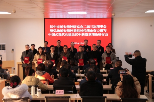 12月26日,汉中市延安精神研究会二届三次理事会暨弘扬延安精神勇担时代使命奋力谱写中国式现代化建设汉中新篇章理论研讨会在市委党校召开,会议由市延会常务副会长张胜主持,汉中市委宣传部副部长、理论讲师团团长宋瑜出席会议,延安精神研究会副会长、汉中职业技术学院马克思主义学院教授李小玲以及延安精神研究会会员、思政课教师代表参加了会议。