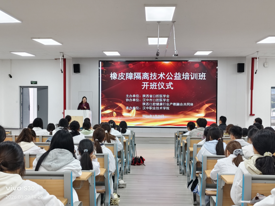 3月29日,由陕西省口腔医学会主办,汉中市口腔医学会、陕西口腔健康行业产教融合共同体协办,汉中职业技术学院承办的“业精于‘秦’橡皮障隔离技术公益培训班”在学院成功举办。汉中及周边地区口腔医疗机构骨干、学院口腔医学专业师生共百余人参加培训。