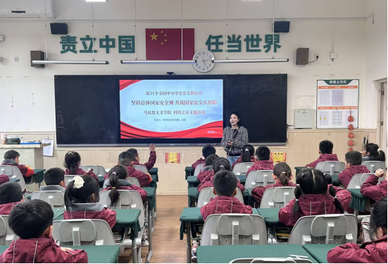 活动中,马克思主义学院习近平新时代中国特色社会主义思想概论教研室主任刘璇以“坚持总体国家安全观 共筑国家安全大屏障”为主题,紧扣小学生认知特点,采用通俗易懂的语言、生动形象的案例和互动问答的方式,深入浅出地讲解了国家安全的基本内涵、重要意义以及日常生活中的维护举措。她引导孩子们从小树立“国家安全、人人有责”的意识,懂得识别和抵制危害国家安全的行为,争做守护国家安全的小卫士。