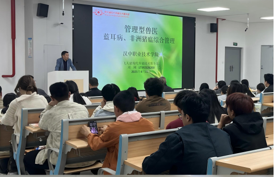 刘刚围绕兽医工作理念、动物疫病综合防控两大核心内容展开系统讲解。结合多年一线养殖技术服务经验,打破传统兽医思维,提出现代化管理型兽医工作理念,并详细剖析了蓝耳病与非洲猪瘟的致病机理、传播规律与防控策略。讲座内容详实、实用性强,有效提升了师生专业技能与职业素养。