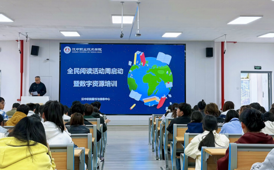 4 月 22 日,图书与信息中心在J7-102号教室举行2026年“全民阅读活动周”启动仪式暨数字资源使用培训专题讲座。图信中心全体教职工、各二级学院学管办负责人及学生代表共200余人参加。活动由图书与信息中心副主任李松涛主持。