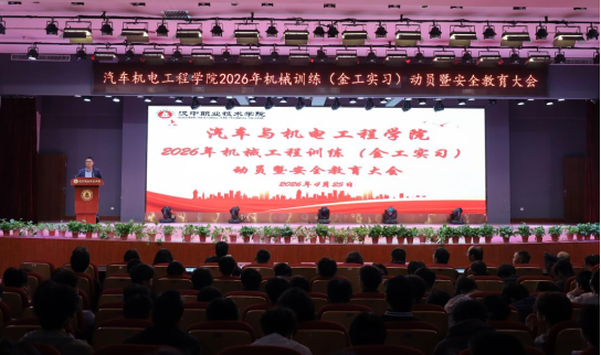 4月25日,汽车机电学院在行政楼一楼多功能厅召开2026年机械工程训练(金工实习)动员暨安全教育大会。
